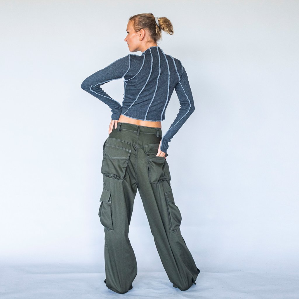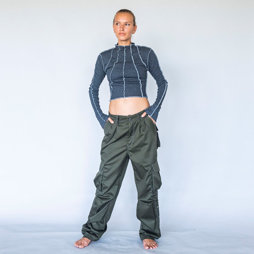 crop top Z ŽEBROVANÉHO ÚPLETUASYMETRICKÝ STŘIHVÝRAZNÉ ŠVYNEZAČIŠTĚNÉ OKRAJE VÍCE INFO V POSISU NÍŽE